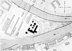 Baujahr 1898, ehemalige Maschinenhalle der Schweizerischen Landesausstellung 1896 in Genf, die der Koksaufbereitung, Schlackensteinfabrikation und Schamottenmüllerei diente.[35]
