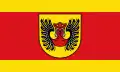 Flagge und Banner sind im Verhältnis 1:4:1 gelb-rot-gelb quer- bzw. längsgestreift mit dem aufgelegten Wappen in bzw. oberhalb der Mitte.[25]