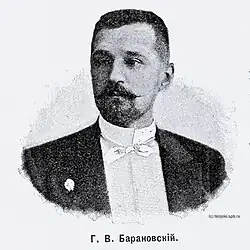 Gawriil Wassiljewitsch Baranowski (russisch Гавриил Васильевич Барановский), * 25. Märzjul. / 6. April 1860greg. in Odessa; † 15. Junijul. / 28. Juni 1920greg. in Komarowo[1] war ein russisch-ukrainischer Architekt, Bauingenieur, Kunsthistoriker und Verleger. Er arbeitete hauptsächlich für die Familie Jelissejew in Sankt Petersburg, aber auch in Moskau, und erstellte die Stadtplanung für Murmansk, damals Romanow am Murman.