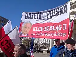 Die Gazeta Polska unterhält eine Reihe von Klubs (Kluby Gazety Polskiej), die sich nicht nur in Polen, sondern auch im Ausland befinden, an Orten, an denen Polen präsent sind (Chicago, New York, London, Dublin, Paris, Leeds, Vancouver, Frankfurt, Berlin, Sydney).[15] Die Klubs organisieren Treffen mit Schriftstellern, Politikern und Persönlichkeiten des öffentlichen Lebens, Kundgebungen und Demonstrationen. Seit 2012 organisierte die Gazeta Polska jährlich "Die große Reise nach Ungarn" (Wielki wyjazd na Węgry). Ein reservierter Zug verlässt den Warschauer Hauptbahnhof und hält auf dem Weg nach Ungarn in Radom, Kielce, Kraków, Tarnów und Nowy Sącz, um für Viktor Orbán zu demonstrieren.[16][17][18]