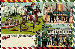 Die Herkunft des Begriffes, der wohl gegen Ende des 19. Jahrhunderts entstand, ist unklar. Zu Anfang des 20. Jahrhunderts waren kolorierte Postkarten mit Motiven der „reitenden Gebirgsmarine“ populär.[2] Häufig waren die Karten mit „Gruß von der Musterung“ versehen.
