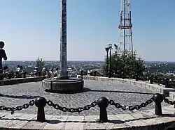 Der Hügel ist inzwischen von Bäumen und Buschwerk bewachsen und wird von einer Aussichtsterrasse gekrönt.