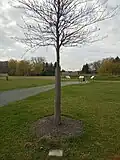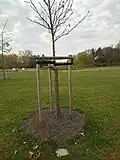Eine Informationstafel zu der Baumgruppe wurde im Mai 2025 aufgestellt. Sie wurde aus dem städtischen Bürgerhaushalt finanziert.[64][65] Zunächst war diese Idee einer Tafel mit der Begründung der Vandalismusanfälligkeit mehrfach verworfen worden.[17]