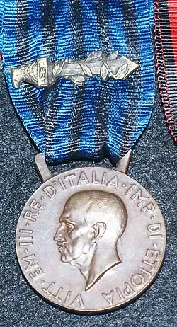 Die aus geschwärzter Bronze gefertigte runde Medaille hat einen Durchmesser von 32 mm und zeigt auf ihrem Avers das nach rechts gerichtete Brustbild des Stifters mit der Umschrift VITT.EM.III.RE.D´ITALIA.IMP-DI.ETIOPIA (Vittorio Emanuel III König von Italien Kaiser von Äthiopien). Das Revers zeigt rechts die Fasces und links daneben einen Berg mit davorliegendem Massiv. Über dem Berg die Inschrift AFRICA ORIENTALE (Ostafrika). Bei dem Berg handelt es sich um die Gruppe der Simien-Berge. Unter diesen Bergmassiv ist die zweizeilige Inschrift MOLTI NEMICI / MOLTO ONORE (Viel Feind, viel Ehr) zu lesen.