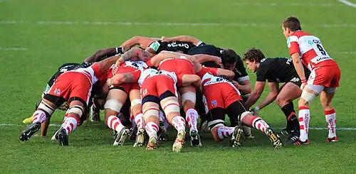 Das Gesamtgewicht der acht Gedrängespieler in Weltklassemannschaften ist mindestens 800 kg, oft mehr als 1000 kg[1] die im Gedränge erzeugte Kraft beträgt bis 16.000 Newton.[2]