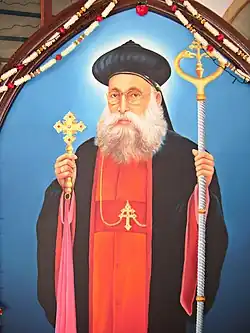 Syro-malankarische Pontifikalmesse für Mar Ivanios, mit dessen geschmückten Bild im Vordergrund (2008)