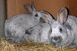 - ↑ Bundesanstalt für Landwirtschaft und Ernährung [BLE] (Hrsg.): Rote Liste einheimischer Nutztierrassen in Deutschland 2015. 2015, Gefährdung einheimischer Nutztierrassen – Kaninchen, S. 157 ff.
