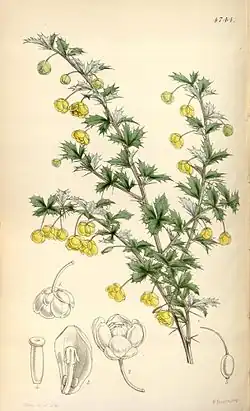 Illustration der Gefälligen Berberitze (Berberis concinna) aus Curtis’ botanical magazine | ||||||||||||