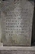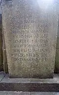 Auf den Tafeln an den übrigen Seiten sind die Namen und Todestage von Gefallenen aus beiden Weltkriegen verzeichnet. Oberhalb dieser Steintafeln verläuft ein umlaufendes Spruchband, das die Absicht des Denkmals erläutert: