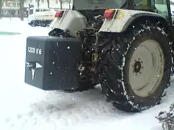 Bei Seilaufzügen und Klappbrücken etc. kann an der Verlängerung des Zugseils bzw. des Klappteils über den Drehpunkt hinaus ein Gegengewicht angebracht werden, das möglichst genauso groß wie die Hublast ist. Der Antrieb muss dann im Optimalfall nur die mechanische Reibung der Hebemechanik (Seilrolle oder Drehachse) überwinden. Oft sind die Lasten jedoch variabel (beispielsweise durch wechselnde Personenzahl in Aufzügen) und eine genaue Abgleichung erfolgt nicht. In diesem Fall muss teilweise der Antrieb zusätzlich Leistung für die echte Hebearbeit aufbringen.[1]