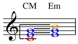 Nach Riemanns eigener Formulierung entsteht ein Leittonwechselklang „durch Einstellung des Leittons zur Prim statt der Prim“.[3] Diese einfache und allgemeine Definition ist nur möglich und verständlich vor dem Hintergrund, dass Riemann als Anhänger des harmonischen Dualismus im Molldreiklang ein Spiegelbild des Durdreiklangs sah: den Durdreiklang bezeichnete er als „Oberklang“, der aus Prim, großer Oberterz und Oberquint besteht, wogegen er den Molldreiklang als „Unterklang“ betrachtete, der aus Prim, großer Unterterz und Unterquint gebildet wird. Im Unterschied zur heutigen Auffassung ist also für Riemann die „Prim“ des Molldreiklangs nicht der unterste, sondern der oberste Ton. Entsprechend ist beim Durdreiklang der „Leitton zur Prim“ die kleine Untersekunde des untersten, beim Molldreiklang die kleine Obersekunde des obersten Tons.