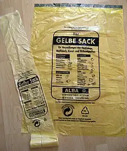 Als Gelben Sack bezeichnet man in Deutschland und Österreich einen dünnen,[1] gelblich transparenten Kunststoffsack, in dem im Rahmen der lokalen Abfallentsorgung Müll aus Kunststoff, Metall oder Verbundmaterialien abgegeben werden kann. Je nach Abstimmung mit den Städten und Gemeinden kann auch die Nutzung einer Gelben Tonne möglich sein. Gelber Sack bzw. Gelbe Tonne sind Teil des Dualen Systems in der deutschen Abfallwirtschaft.