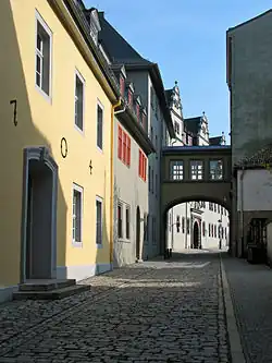 Zusammen mit dem südlich angrenzenden Roten Schloss (1574–1576) und den beiden klassizistischen „Torhäusern“ (1820) von Coudray bildet der historische Baukomplex mit der Bezeichnung „Markt 15“ einen Innenhof umschließenden Gebäudering.