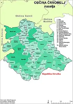 - ↑ Siedlungen in Črnomelj (Jugovzhodna Slovenija / Dolenjska, Slowenien) - Einwohnerzahlen, Grafiken, Karte, Lage, Wetter und Web-Informationen. Abgerufen am 31. Juli 2023.