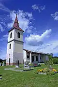 Bei der evangelischen Kirche (slowenisch: Evangeličanska cerkev) in Gornji Petrovci handelt es sich um eine der größten evangelischen Kirchen im Übermurgebiet. Sie ist 22 m lang und 4 m breit und wurde 1804 als einschiffige Kirche mit Galerie und Glockenturm errichtet. 1894 erfolgte eine Renovierung sowie ein Umbau durch den Architekten Daniel Placotta.[43] Die Kirche wurde landesweit bekannt, als hier 1984 die erste weibliche Priesterin in Slowenien ihren Dienst antrat.