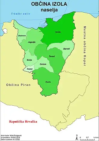 - ↑ Siedlungen in Izola (Obalno-kraška, Slowenien) - Einwohnerzahlen, Grafiken, Karte, Lage, Wetter und Web-Informationen. Abgerufen am 31. Juli 2023.