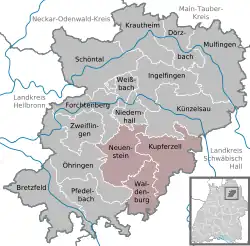 - Stadt Neuenstein, 6618 Einwohner, 47,84 km²