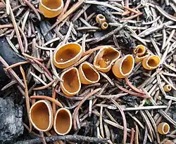 - ↑ Trude Vrålstad, Arne Holst-Jensen, Trond Schumacher: The postfire discomycete Geopyxis carbonaria (Ascomycota) is a biotrophic root associate with Norway spruce (Picea abies) in nature. In: Molecular Ecology. Band 7, Nr. 5, 1998, S. 609–616, doi:10.1046/j.1365-294x.1998.00365.x.