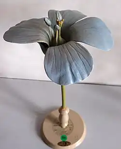 Der Blütenstand ist ein rispenartiger Wickel. Die Blüten sind groß und über zwei Zentimeter breit. Die Blütenstiele sind länger als das Tragblatt, kahl und aufrecht. Die Blüte ist fünfzählig. Die Kelchblätter sind fünf bis sieben (neun) Millimeter lang. Sie sind lang zugespitzt, haben einen weißen Hautrand und sind an der Spitze bewimpert. Die Kelchblätter sind drei- oder fünfnervig. Die Kronblätter sind 12 bis 15 Millimeter lang und von hellblauer Farbe mit dunklerer Aderung, selten weiß, violett oder rosa. Die fünf Staubblätter sind zwei bis fünf Millimeter lang, an ihrem Grund sitzen Nektarien. Der Fruchtknoten ist oberständig und besteht aus fünf verwachsenen Fruchtblättern mit freien Griffeln. Die Narben sind keulenförmig. Blütenbiologisch handelt es sich um eine homogame, nektarführende Scheibenblume. Vorherrschend ist Selbstbestäubung (Autogamie), die Fremdbefruchtung durch Insekten (Auskreuzungsrate) beträgt rund fünf Prozent.