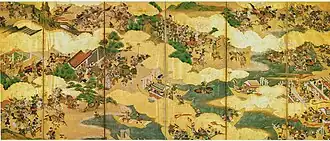 - 1181 Schlacht von Yahagigawa: Die Minamoto auf dem Rückzug von Sunomata in der Präfektur Gifu stellen sich dem Feind.