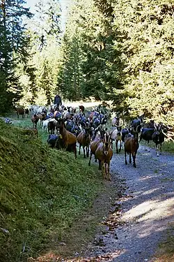 Wie oft in gemischtrassigen Herden: Die bewegungshungrigen Gämsfarbigen vorneweg, die „lauffaulen“ Toggenburger und Saaneziegen am Ende der Herde.