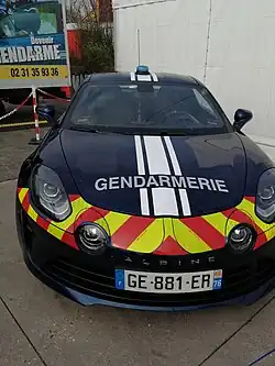 - Departementale Gendarmerie (La gendarmerie départementale),[5] die nationale polizeiliche Behörde für Gemeinden mit weniger als 20 000 Einwohner. Die Struktur folgt den 13 Regionen des französischen Mutterlandes (Metropole).