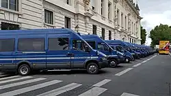 - Die Garde républicaine[7] in Brigadenstärke dient dem protokollarischen Ehrendienst und der Bewachung von höheren Staatsbehörden wie der Residenz des Staatspräsidenten, der Residenz des Premierministers und den Kammern des französischen Parlaments.