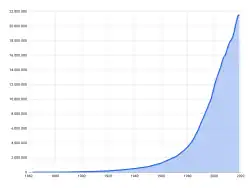 1961 hatte die Kirche nach eigenen Angaben zum ersten Mal mehr als 1 Million Mitglieder, zur Jahrtausendwende verkündete sie eine Mitgliederzahl von 10 Millionen. Per 31. Dezember 2016 zählte man 20.008.779 Mitglieder.[5] Die Zahlen beziehen sich nur auf getaufte Mitglieder. Kinder aus adventistischen Familien sind nicht mitgezählt. Zusammen mit den noch nicht getauften Kindern und Jugendlichen besuchen weit über 30 Millionen Menschen die adventistischen Gottesdienste.