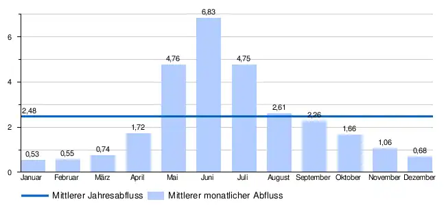 - ↑ Die Abflussvariabilität beschreibt das Ausmass der Schwankungen des mittleren Abflusses einzelner Jahre um den langjährigen mittleren Abflusswert.