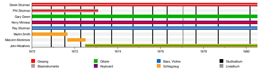 | Nicht enthalten sind Martin Smith, Malcolm Mortimore, beide Schlagzeug und Perkussion. | |||||||