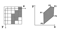 Vektordaten bestehen aus einzelnen oder aneinandergereihten Punkten (Vertices). Diese Punkte sind mit Koordinaten versehen und bilden mit ihren Koordinatenangaben gerichtete Strecken in einem Koordinatensystem. In einem ebenen zweidimensionalen System sind die Punkte mit zwei Richtungsangaben (x- und y-Wert) versehen. Die Punkte können dann wiederum Linien und Flächen (Polygone) bilden. Rasterdaten hingegen sind wie digitale Fotos aus vielen unterschiedlichen Pixeln (auch Rasterzellen genannt) aufgebaut. Sie verfolgen einen feldbasierten Ansatz und teilen mit dem Raster die Fläche in homogene Teilflächen. So haben z. B. in digitalen Höhenmodellen alle Rasterzellen, die Flächen auf gleicher Meereshöhe repräsentieren, den gleichen Wert. Beide Modelle besitzen Vor- und Nachteile. Das Vektormodell ist datensparsamer Modelleriungen. Das Rastermodell auf der anderen Seite lässt flächendeckend einfachere und schnellere Analysen zu, dafür kann es im Gegensatz zum Rastermodell nur ein Wert (eine Sachinformation) pro Rasterzelle speichern.[1][2]
