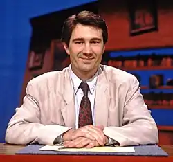 Geoffrey Perkins als Gastgeber der Spielshow Don't Quote Me, 1990