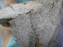 - ein beiger bioklastischer Kalk (mit feinkörnigen Pelletoiden und Stromatolithen)