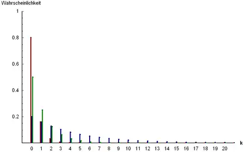 - die Wahrscheinlichkeitsverteilung der Anzahl der Fehlversuche vor dem ersten Erfolg. Diese Verteilung ist auf der Menge definiert.