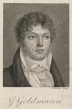 - ↑ Der zweite und der dritte Vorname erscheinen in manchen Quellen vertauscht, Goldmann selbst nannte sich 1816 und 1840 so.