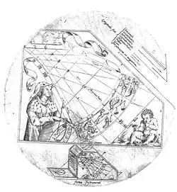 - Figur einer runden Büchse mit Sonnenuhr im Boden und am inneren Rand, 1608 (Holzschnitt und Erklärung)