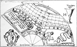 - Zifferblatt einer Bechersonnenuhr für 47–49° Polhöhe, Lauingen 1608 (Kupferstich)