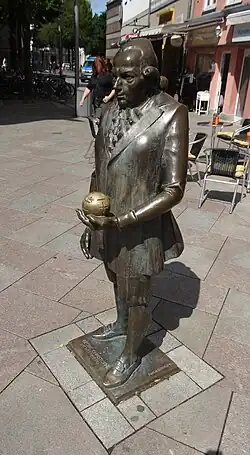 - ↑ Vgl. Lichtenberg-Denkmal Stade auf der Webseite Statues – Hither & Thither sowie Projekte und Förderungen des Vereins zur Erhaltung stadtgeschichtlich bedeutsamer Gebäude und Einrichtungen zur unmittelbaren Förderung von Kunst und Kultur und zur Förderung der Heimatpflege und Heimatkunde in der Hansestadt Stade e. V. Abgerufen am 25. Februar 2021.