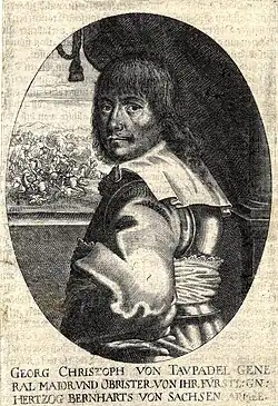 - ↑ a b c d e f Peter Engerisser: Der schwedisch-protestantische Dragoneroberst Georg Christoph von Taupadel (1595 - 1647) und die Legende vom verlorenen Arm. Abgerufen am 8. Juni 2022.