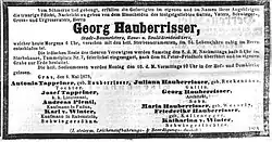 - ↑ Georg Hauberisser †. In: Grätzer Zeitung. Der Aufmerksame. Steyermärkische Intelligenzblätter. Steyermärkisches Intelligenzblatt. Steyermärkisches Amtsblatt / Stiria, ein Blatt des Nützlichen und Schönen / Gratzer Zeitung. Steiermärkisches Amtsblatt, 7. Mai 1875, S. 3 (online bei ANNO).