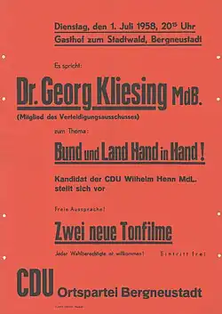 - ↑ a b c d e CDU-Stadtverband Bad Honnef (Hrsg.): Unsere Stadt 1946 bis 1996 – CDU Bad Honnef 50 Jahre jung [Die Festschrift der CDU Bad Honnef zu ihrem 50. Geburtstag], Bad Honnef 1996, S. 32.