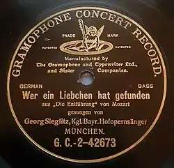 Georg Sieglitz hinterließ Aufnahmen seiner Stimme bei Berliner Records (München 1901) und G&T (München 1902–05).