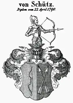 Bereits im Jahre 1790 wurde Schütz zusammen mit seinem Bruder, dem Geheimen Oberfinanzrat Johann Friedrich (1740–1798), als von Schütze in den Adelsstand erhoben.[1]