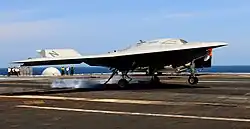 - ↑ Mass Communication Specialist 3rd Class Brandon Vinson: X-47B Makes First Arrested Landing at Sea. In: NNS130710-06. USS George H.W. Bush Public Affairs, 10. Juli 2013, archiviert vom am 14. Juli 2013; abgerufen am 19. Juli 2014.