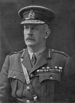 Kurz zuvor wurde George Henry Fowke am 22. Februar 1916 der zeitlich befristete Dienstgrad eines Generalleutnants (Temporary Lieutenant-General) verliehen, woraufhin er von dem zum Adjutant-General to the Forces ernannten Generalmajor Sir Nevil Macready den Posten als General-Adjutant der BEF übernahm.[22] Sein eigener Nachfolger als Engineer-in-Chief of the Royal Engineers der BEF wurde am 5. März 1916 Generalmajor Spring R. Rice.[23] Für seine Verdienste wurde er am 3. Juni 1916 als Knight Commander des Order of the Bath (KCB) nobilitiert, wodurch er fortan den Namenszusatz „Sir“ führte.[24][25] Er wurde am 1. Mai 1917 auch Kommandeur der französischen Ehrenlegion[26] sowie am 1. Januar 1918 auch Knight Commander des Order of St Michael and St George (KCMG).[27][25] Darüber hinaus wurde ihm mit Wirkung zum 11. März 1918 das französische Croix de guerre verliehen.[28]