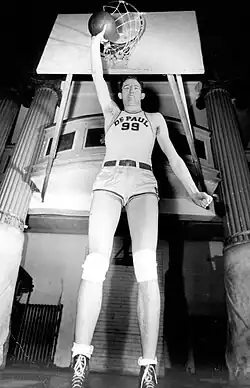 George Mikan war Sohn kroatischer Eltern, die aus Vivodina in der Nähe von Karlovac stammten und in die Vereinigten Staaten auswanderten. Er studierte an der DePaul University in Chicago und fing dort auch an, Basketball zu spielen. Mikans Körpergröße erlaubte es ihm, geworfene Bälle kurz vor dem Korb abzufangen, was im englischen „Goaltending“ genannt wird. Mikan und Bob Kurland dominierten mit dieser Art der Verteidigung derart, dass die NCAA 1944 das „Goaltending“ für regelwidrig erklärte.