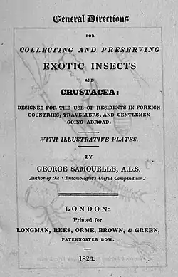 - General directions for collecting and preserving exotic insects and crustacea: designed for the use of residents in foreign co untries, travellers, and gentlemen going abroad; with illustrative plates, London Longman, Rees, Orme, Brown & Green, 1826.