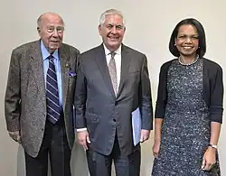 George Pratt Shultz (* 13. Dezember 1920 in New York City; † 6. Februar 2021 in Stanford, Kalifornien)[1] war ein US-amerikanischer Politiker der Republikanischen Partei. Von 1969 bis 1970 war er Arbeitsminister und von 1972 bis 1974 Finanzminister in der Regierung von Präsident Richard Nixon sowie von 1982 bis 1989 Außenminister in der Regierung von Präsident Ronald Reagan.