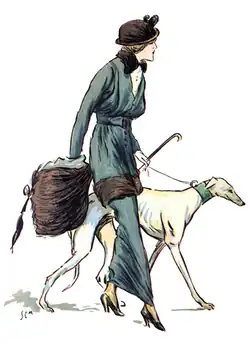 Mit „Dame mit Windhund“ skizzierte Sem kurz vor dem Krieg eine – gemessen an den Maßstäben der Zeit – einfache Mode, wie sie ihm als „echter Chic“ vorschwebte.[5]