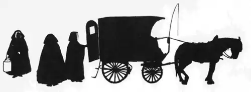 „Silhouette“ von Nonnen, die überflüssige Lebensmittel in Hotels und auf Märkten einsammeln[2]